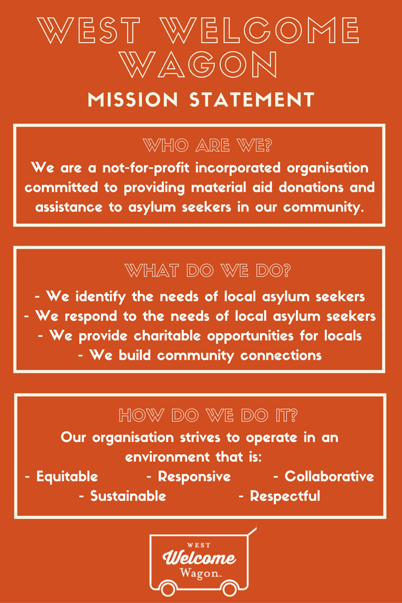 West Welcome Wagon Donate Follow Us Contact We are a volunteer run organisation, providing material aid to those in desperate need of it. We support over 500 households across Melbourne's west, and exist thanks to the support of the community. We are West Welcome Wagon.